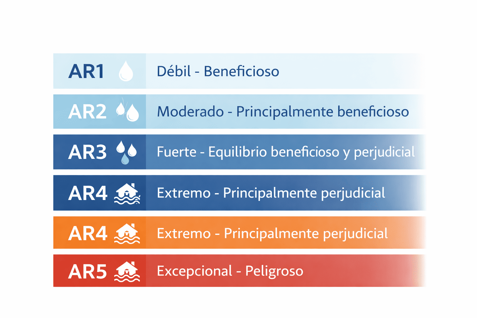 No todos son iguales, ni mucho menos. En 2019, el meteorólogo F. Martin Ralph y su equipo en el CW3E (Universidad de California) crearon una escala de 1 a 5 —sí, como la de huracanes— para clasificarlos según intensidad y duración: