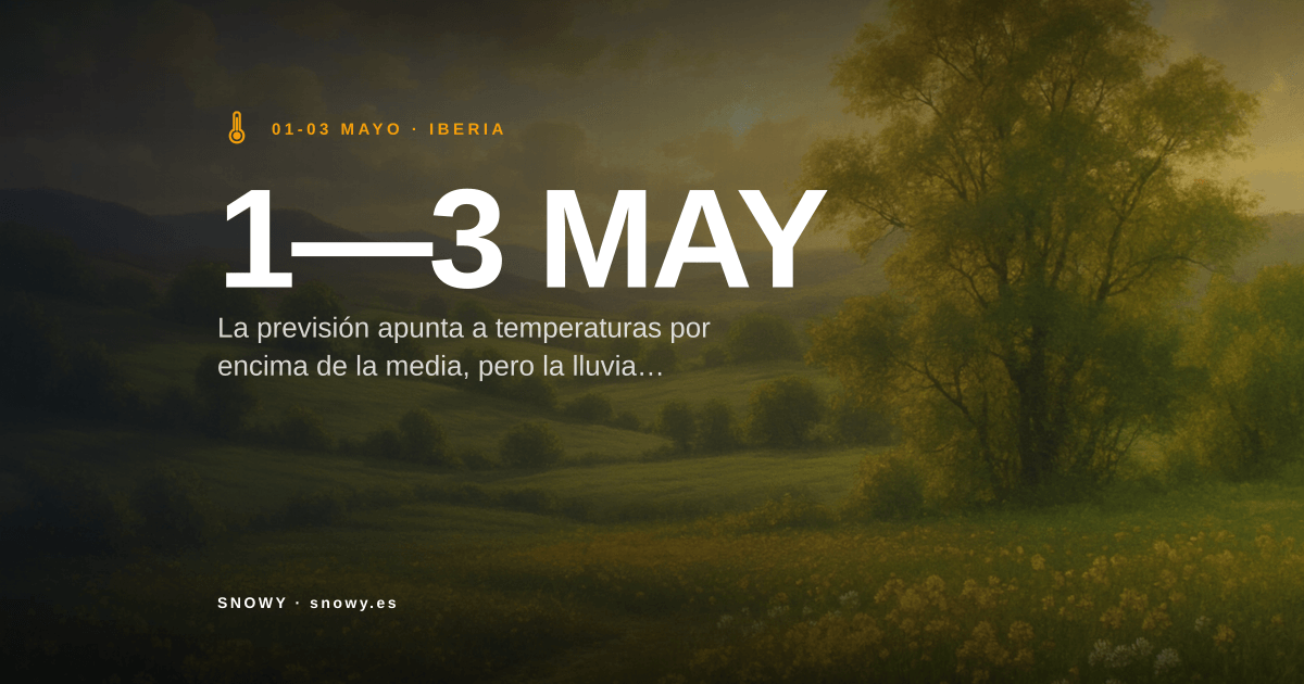 El puente del 1 de mayo cae este año en fin de semana largo natural: viernes 1 (Día del Trabajador, festivo nacional), sábado 2 y domingo 3. En Madrid, además, el sábado 2 se celebra el Día de la Comunidad. Tres días sin gastar vacaciones, cuatro si se añade el lunes 4. Es de los puentes más buscados del calendario y, a 11 días vista, conviene saber lo que se puede afirmar con confianza, lo que no, y dónde está la dispersión real entre modelos.