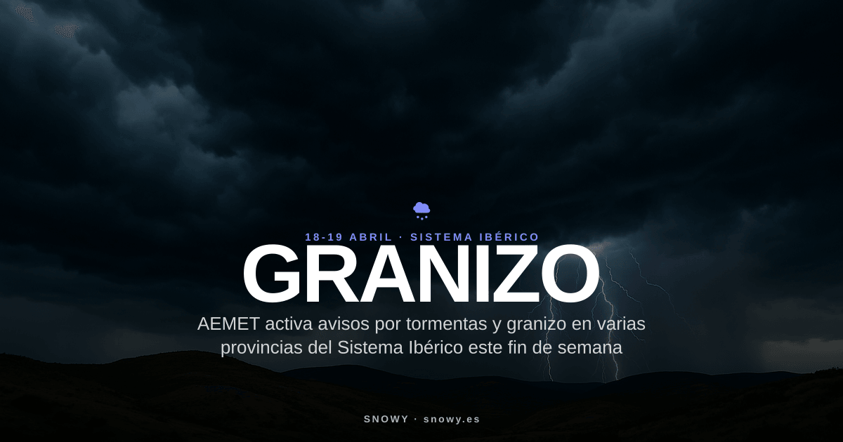 Mientras la Península se prepara para el episodio cálido del 20 al 24 de abril (análisis completo aquí), este sábado 18 y domingo 19 dejan un tramo de inestabilidad previa focalizado en el Sistema Ibérico y su entorno. AEMET ha activado avisos por tormentas, granizo y rachas fuertes de viento para varias provincias del interior este, con el foco más intenso en el eje Guadalajara-Cuenca-Teruel-Zaragoza-Soria.